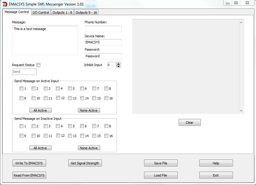 This application uses the SMS or text messaging service of the mobile phone network to monitor inputs and control outputs. In this version only the digital inputs are monitored.